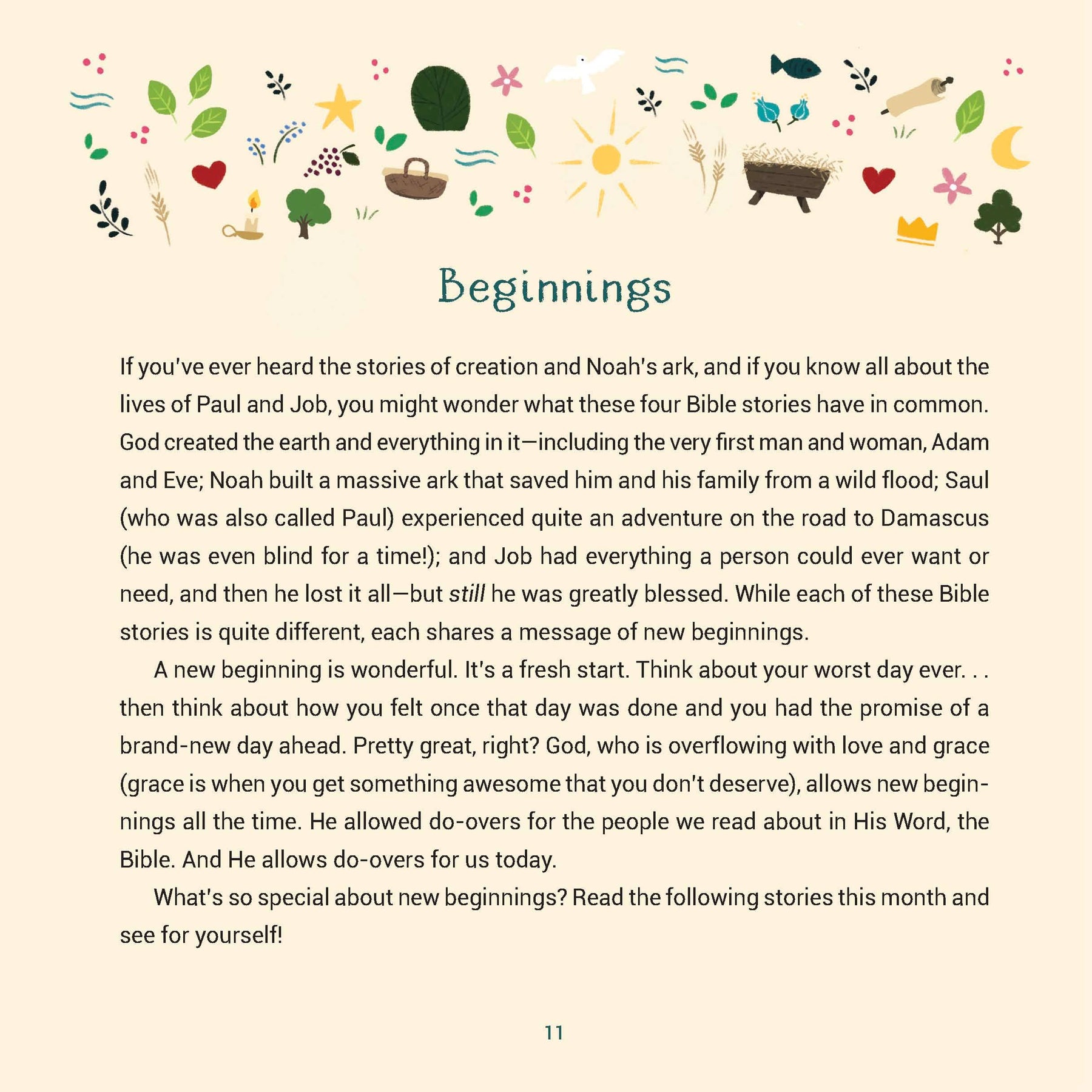 Each section includes 4 colorfully illustrated Bible stories that reinforce the monthly theme and show kids how God worked in the lives of Bible men and women--and how He works in the lives of people today!