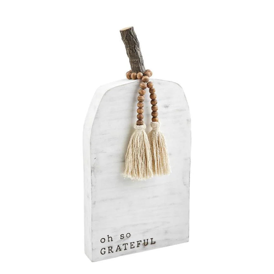 Mud Pie Grateful White Washed Pumpkin