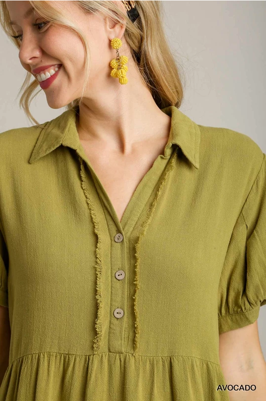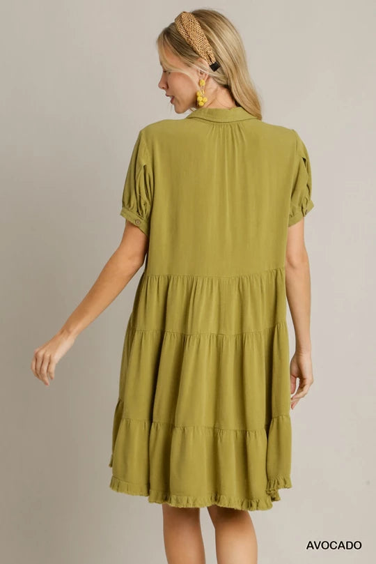 New Arrival: Avocado Linen Collared Tiered Mini Dress