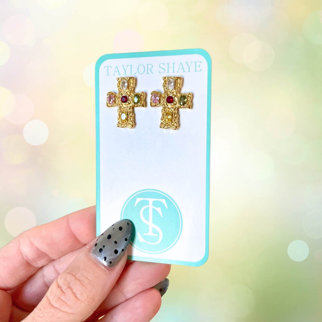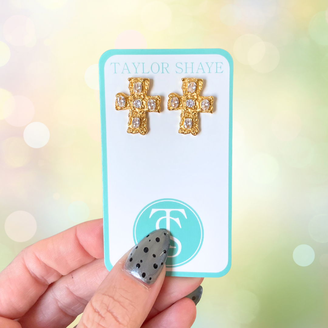 Introducing the Martha Cross Stud from Taylor Shaye Designs. These studs are a simple yet stylish accessory, perfect for special occasions. Each piece is designed with a unique touch, making it a perfect addition to any jewelry collection. Enjoy the versatility and timeless design of Taylor Shaye Designs.
